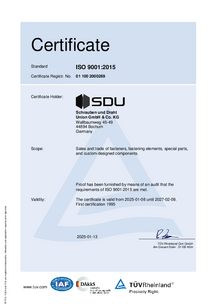 The company SCHRAUBEN UND DRAHT UNION GmbH & Co. KG introduced or integrated a quality management system in 1995 and an environmental management system in 2010 and has since been certified.